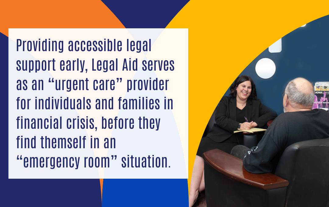 Providing accessible legal support early, Legal Aid serves as an “urgent care” provider for individuals and families in financial crisis, before they find themself in an “emergency room” situation, such as homelessness, where they need the services of a shelter. Whether someone has an attorney plays a large role in the outcome of the case. “The rules play into really disadvantaging people that don’t have an attorney,” Michelotti says.